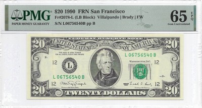 Find many great new & used options and get the best deals for 1990 $20 SAN FRANCISCO FRN. PMG GEM Uncirculated 65 EPQ Banknote. 3rd of 3 at the best online prices at eBay! Free shipping for many products!