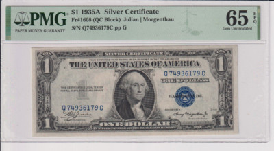 Fr 1608 1935A $1 SC Q74936179C PMG 65EPQ GEM CU 1935-A BLUE SEAL NOTE