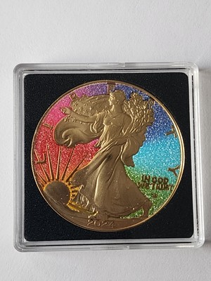 Year: 2024. This Exceptional 1 Oz pure silver coin is dedicated to the Rainbow. The rainbow takes the form of a multicolored circular arc. The coin is made even more precious because it is entirely covered with diamond dust and plated with 24k gold.