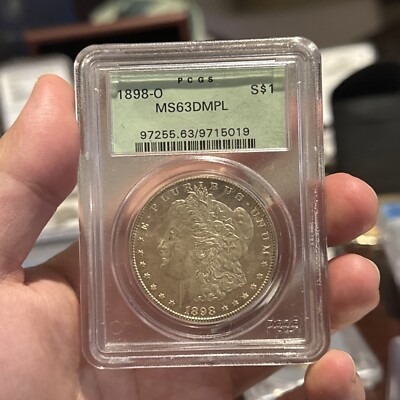 The 1883-O Morgan Silver Dollar is a highly sought-after coin minted in New Orleans with a silver composition of 0.9 fineness. Graded as MS 63 by PCGS, this coin is classified as Uncirculated and features a Deep Mirror Proof-Like strike type, showcasing a reflective surface. This particular coin comes in an old green holder (OGH), adding to its desirability among collectors. The coin represents a piece of United States history and is a valuable addition to any numismatic collection.