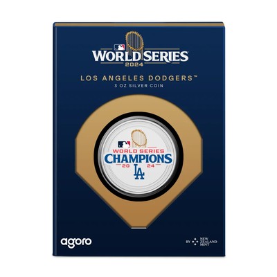 Highlights the World Series Champions 2024 emblem and the official Los Angeles Dodgers logo in color. A Certificate of Authenticity and the coin’s unique number are provided. FinishProof / Colour. Turn to the obverse for baseball stitch detailing in a frosted finish.