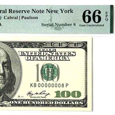 Find many great new & used options and get the best deals for SPECTACULAR LOW # 8 Fancy Binary serial # 00000008 single digit $100 PMG 66 EPQ at the best online prices at eBay! Free shipping for many products!