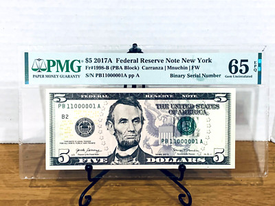 Find many great new & used options and get the best deals for 2107-A $5 FRN PMG 65EPQ Fancy TRUE 0/1 BINARY Serial #PB11000001A at the best online prices at eBay! Free shipping for many products!