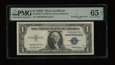 Friedberg # is 1615 ; serial # is 08168876G. Signatures are Priest and Anderson. DBR Currency – Online paper money at its finest. PMG has graded this note Gem Unc 65 EPQ, with the distinction of Exceptional Paper Quality.