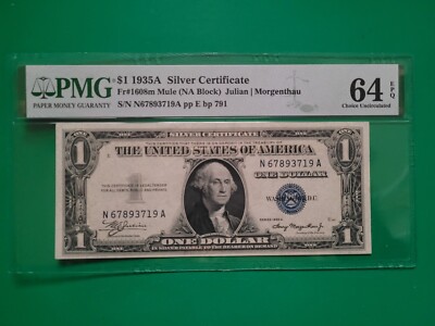 1935A Mule $1 Silver Certificate Fr#1608m PMG 64 EPQ