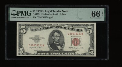 Friedberg # is 1534; serial # is C39073183A. Signatures are Smith and Dillon. DBR Currency – Online paper money at its finest. PMG has graded this note Gem Unc 66 EPQ, with the double-distinction of Exceptional Paper Quality and Exceptional Embossing.