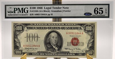 Find many great new & used options and get the best deals for 1966 $100 Legal Tender Note – Fr#1550 (AA Block) – PMG 65 EPQ Gem Uncirculated at the best online prices at eBay! Free shipping for many products!