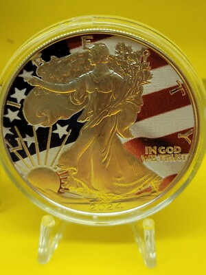 Introducing the 2024 American Eagle Silver Coin with a colorized hologram design. This stunning coin features a composition of pure silver and a precision metal content of 1 oz. It has been certified by the US Mint and is a must-have addition to any coin collection. The coin’s intricate details and beautiful design make it a true treasure. Don’t miss out on the opportunity to own this remarkable piece of silver bullion.