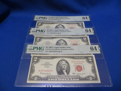 Find many great new & used options and get the best deals for 3-1963 A $2 Two Dollar Red Seal USN Note Choice Uncirculated PMG 64 AA Block EPQ at the best online prices at eBay! Free shipping for many products!