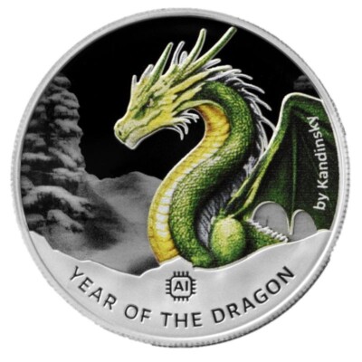 Beautiful 2024 Lunar Dragon coin! Year: 2024. LUNAR YEAR OF THE DRAGON. Obverse side of the coin: P ha That Luang image. Pha That Luang is a gold-covered large Buddhist stupa in the centre of Vientiane, Laos.
