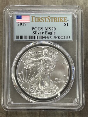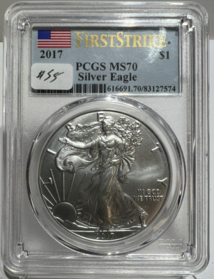 This 2017 American Silver Eagle is a stunning addition to any coin collection. Graded MS70 by PCGS, this uncirculated coin features a first strike and a business strike type. The coin is composed of 0.999 fineness silver and has a denomination of $1. Minted in Philadelphia by the U.S. Mint, this coin is a must-have for any collector or investor interested in silver coins. The coin also comes with certification from PCGS. Don’t miss the opportunity to add this beautiful piece to your collection today.