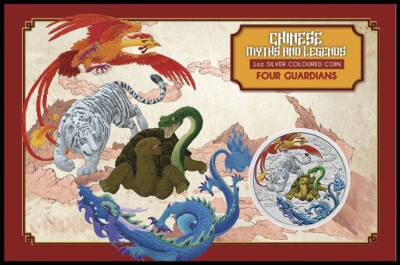 2024 PergMint Chinese Myth and Legends Four Guardians HONG 1oz Silver Coloured Coin in Card. Included in the design is the 2024 year-date and a ‘P125’ mintmark signifying The Perth Mint’s 125th anniversary.