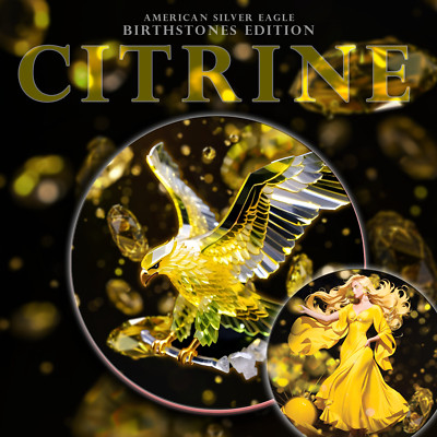 Here are the key details: Design: The obverse features Liberty with a gemstone overlay that flashes citrine gemstone hues when held up to light. Composition: Each coin contains 1 Troy ounce of 99.9% pure silver.