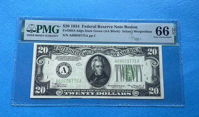 This is a rare and valuable 1934 Boston $20 Federal Reserve Note, graded by PMG, 66 Gem uncirculated with exceptional paper quality. Take a look at the actual pictures for all the details. Thanks for your interest and your bid. Look for more currency in our store. We ship the day after the payment is made ground advantage. You can shop here with confidence. We are celebrating 25 years selling here on eBay.