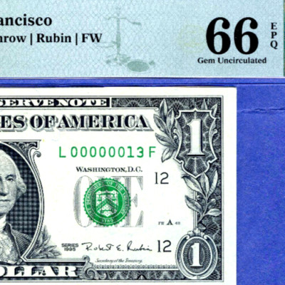 Find many great new & used options and get the best deals for LOW TWO (2) DIGIT FANCY # 00000013 Lucky # PMG 66 EPQ UNCIRCULATED $1 /non star at the best online prices at eBay! Free shipping for many products!