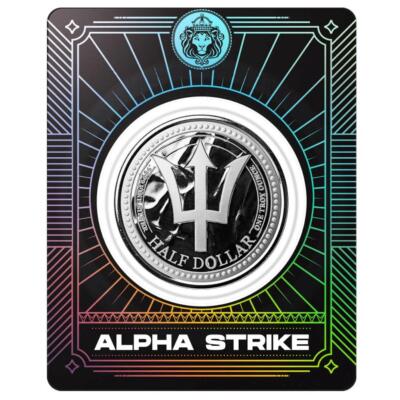 2024 1 oz Barbados Trident .9999 silver coin, direct from mint, sealed in Alpha Strike Certi-Lock®. Proof-like strike, brilliant uncirculated legal tender silver coin and one of the first 999 coins in the 2024 mintage. Prove you were first with Alpha Strike series coins from Scottsdale Mint. Mintage / Serial Numbers are selected at random and will be one of 999.