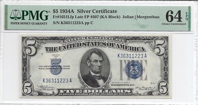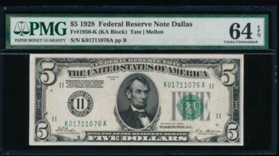 The first few Federal Reserve Notes had the number instead of the letter of the federal reserve district in the seal to the left of the portrait. It is a solid note and has been graded by PMG as Choice Uncirculated 64EPQ.