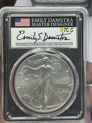 2021 SILVER EAGLE TYPE 2 LANDING PCGS MS70 FDOI EMILY DAMSTRA SIGNATURE