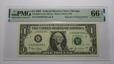 This note was issued by the Federal Reserve Bank of Chicago. This note has a Repeater Serial Number. This note has been graded Gem Uncirculated 66EPQ by PMG! This note is a must have for any collector of Federal Reserve Notes!