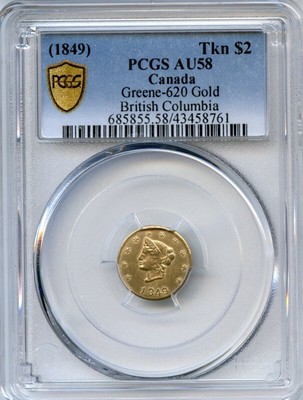 PCGS second finest known. PCGS shows this very coin as a Plate Coin(see last photo) on the PCGS Coinfacts Website. PCGS shows only 4 certified in all grades. Certified genuine and attributed as a Greene-620. Certified PCGS Gold Shield. R7. Most BC gold tokens are many times rare than most California fractional gold. Recent auctions price realized have been increasing dramatically.
