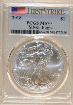 FirstStrike®. One of the most favored designs in U.S. coinage, the Silver Eagle combines attractiveness with silver bullion appeal. MS-70 graded coins show no signs of wear or blemishes, even while magnified.