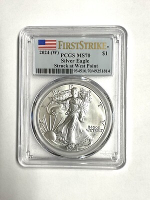 This 2024 (W) American Eagle coin is a highly sought-after addition to any coin collection. Made of pure silver and certified by PCGS, this coin is sure to impress. With a grade of MS 70 and a First Strike Flag Label, this coin is a true gem. Its Precious Metal Content per Unit is 1 oz, making it a valuable investment for any collector. The year 2024 is not to be missed for those looking to add a stunning coin to their collection.