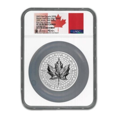 For 2023—in honor of the milestone 35th Anniversary of the first Silver Maple Leaf in 1988—Canada’s Five-Ounce Silver Maple Leaf has taken Taylor’s design to new heights with a unique field pattern of maple leaves.