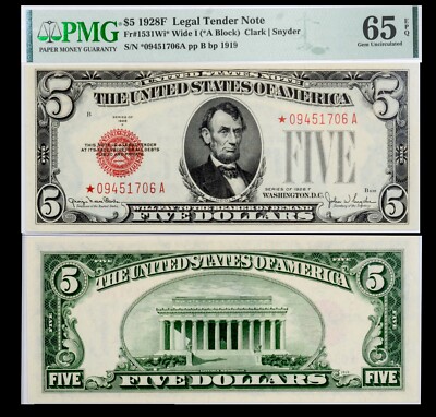 Find many great new & used options and get the best deals for 1928F* $5 Red Seal STAR Legal Tender Note LT PMG 65 EPQ Wide 1 Rare in High Grad at the best online prices at eBay! Free shipping for many products!