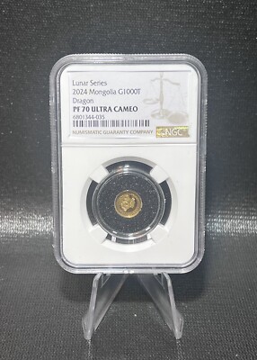 2024 Mongolia G1000t Dragon PF70 Ultra Cameo, Lunar Series, .5 Gram Gold Coin