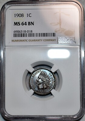 1908/8 Triple RPD Snow-1 Indian Head Cent. NGC MS-64 BN. This piece has radiant mint luster, beautiful toning, and it is one of the Finest, if not the Finest example discovered.