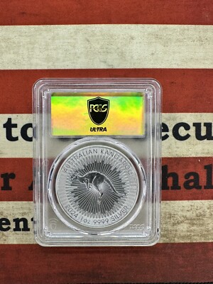 This stunning 1oz silver coin from Australia features the iconic Australian Kangaroo. The coin is made from 0.999 fineness silver and has been graded a perfect MS 70 by PCGS. It is part of the Ultra Breaks GOLD LABEL series and comes with certification from PCGS.