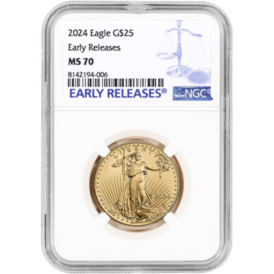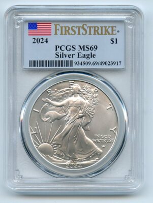 This 2024 Silver Eagle is a rare and valuable addition to any coin collection. With a limited mintage of only 2024, this coin features a stunning Gold Foil design and has been certified by PCGS as MS 70 – the highest possible grade. The coin is made of 0.999 fine silver and weighs 1 oz.