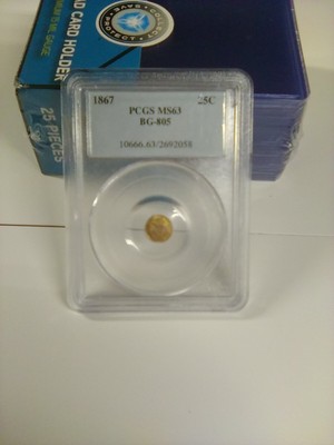 Graded as PCGS MS63 ! Our 1867 BG 806 25 cent gold coin is. 1867 BG-805 25 cent gold! There are only 60 to 75 known in existence! Roraback Garden Market.