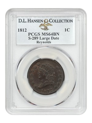 This is the PCGS plate coin for the variety and is the single finest known with no red-brown or red examples known (though other unattributed examples are likely to exist). Deep, dark chocolate surfaces glow with orange-red hues on both well-defined sides. The outer star tips as well as the date and reserve peripheral lettering stretch toward the rims as the metal filled out the dies. Brilliantly strong devices glow with soft retained luster. Two planchet voids by star-13 and a light abrasion in front of Liberty’s nose are the only mentionable flaws. A pleasing example of the Sheldon-289 Large Date variety, this coin boasts light die clashing. Sure to please the discerning collector. – Classic Head Cent