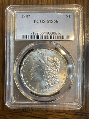 This 1887 Morgan Silver Dollar is a rare gem that has been graded MS 66 by PCGS. With its stunning strike type and intricate details, this coin is a must-have for any serious collector. Made of high-quality silver and minted in Philadelphia, this coin is a true piece of American history.