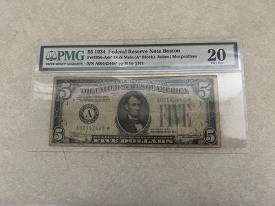 1934 $5 star note graded pmg 20. ships anywhere in the USA thanks for looking check out my other auctions for more great star notes