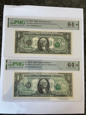 Rare pair of sequential uncirculated bills. Always in a protective cover with no sunlight exposure. Great addition to your collection. Exceptional paper quality. Offset printing from back to front. Sold as a set.