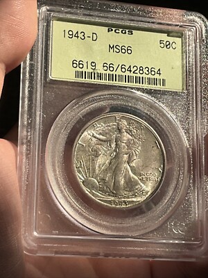 Howdy, up for sale is this 1943 D Walking Liberty Half Dollar. This 90% silver coin is certified by PCGS as an MS 66 uncirculated coin. It is in an old green holder. It has dark toning.