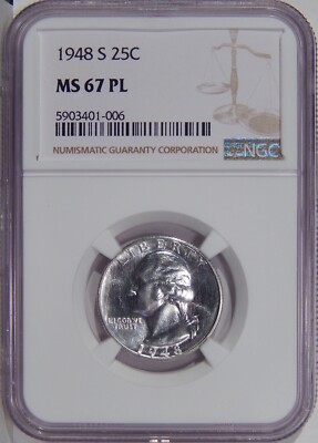1948-S washington Quarter NGC MS67PL Prooflike Pop 2/0 Tied Finest Known