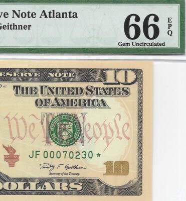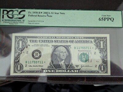 This 2003A $1 Federal Reserve Note, with the Radar Rotator Series number 11755711, has been certified by PCGS with a grade of 65, the highest possible. The note is uncirculated and has been well-preserved, making it a rare find for collectors.