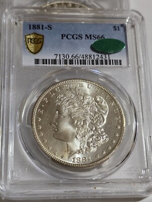 Up for auction is a beautiful 1881-s Pcgs Ms66 Cac Stickered Morgan Dollar. This rare coin is made of silver with a fineness of 0.9 and was minted in San Francisco. The coin is uncirculated and comes with a certification number of 7130.66/48812431.